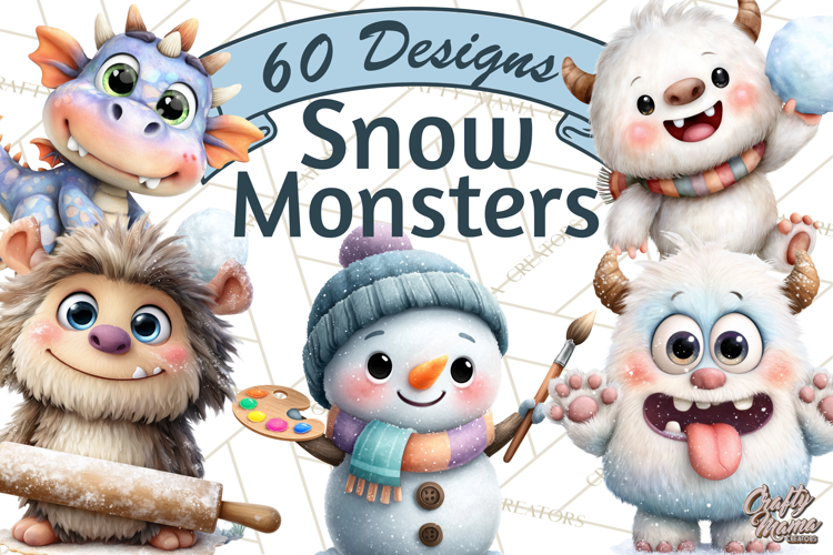 60 adorable files featuring mischievous snow creatures enjoying a magical winter. This collection includes cheerful Yetis, Frost Gnomes, Ice Dragons, and Snowman Characters engaging in fun, chilly activities with coordinating seasonal props. Perfect for winter birthday invitations, nursery decor, sublimation, digital crafting, and printable projects.