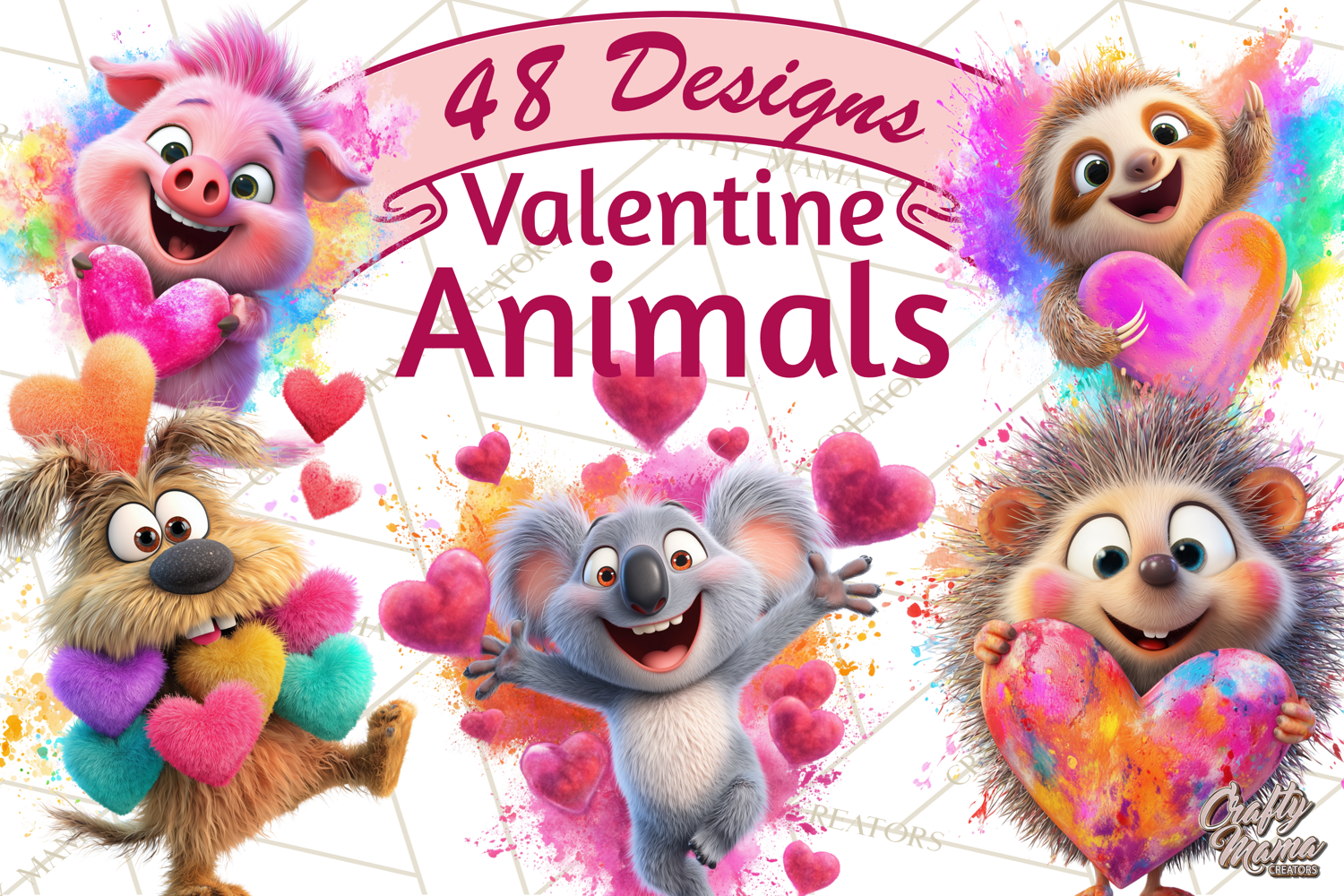 Bring playful Valentine charm to your projects with this adorable collection of humorous 3D animal characters! Each design features quirky expressions, vibrant colors, and a bunch of hearts for a fun, lighthearted Valentine vibe. Perfect for cards, stickers, classroom printables, scrapbooks, decorations, planners, and more.