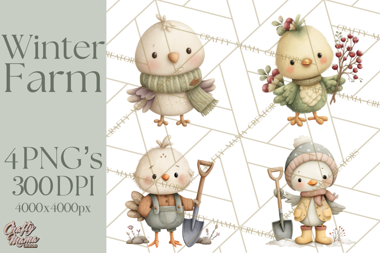 Bring cozy winter charm to your creative projects with this adorable 4-file Winter Farm Animals clipart collection. Each character is illustrated in a cute kids cartoon TV style inspired style—bright, clean, cheerful, and perfect for winter crafting.