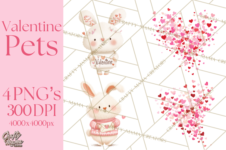 Create adorable Valentine’s projects with this 4-file Valentine Pets clipart collection! Perfect for kids’ crafts, cards, and digital projects, this set includes cute cats, playful puppies, bunnies, and fun Valentine elements in warm soft colors.