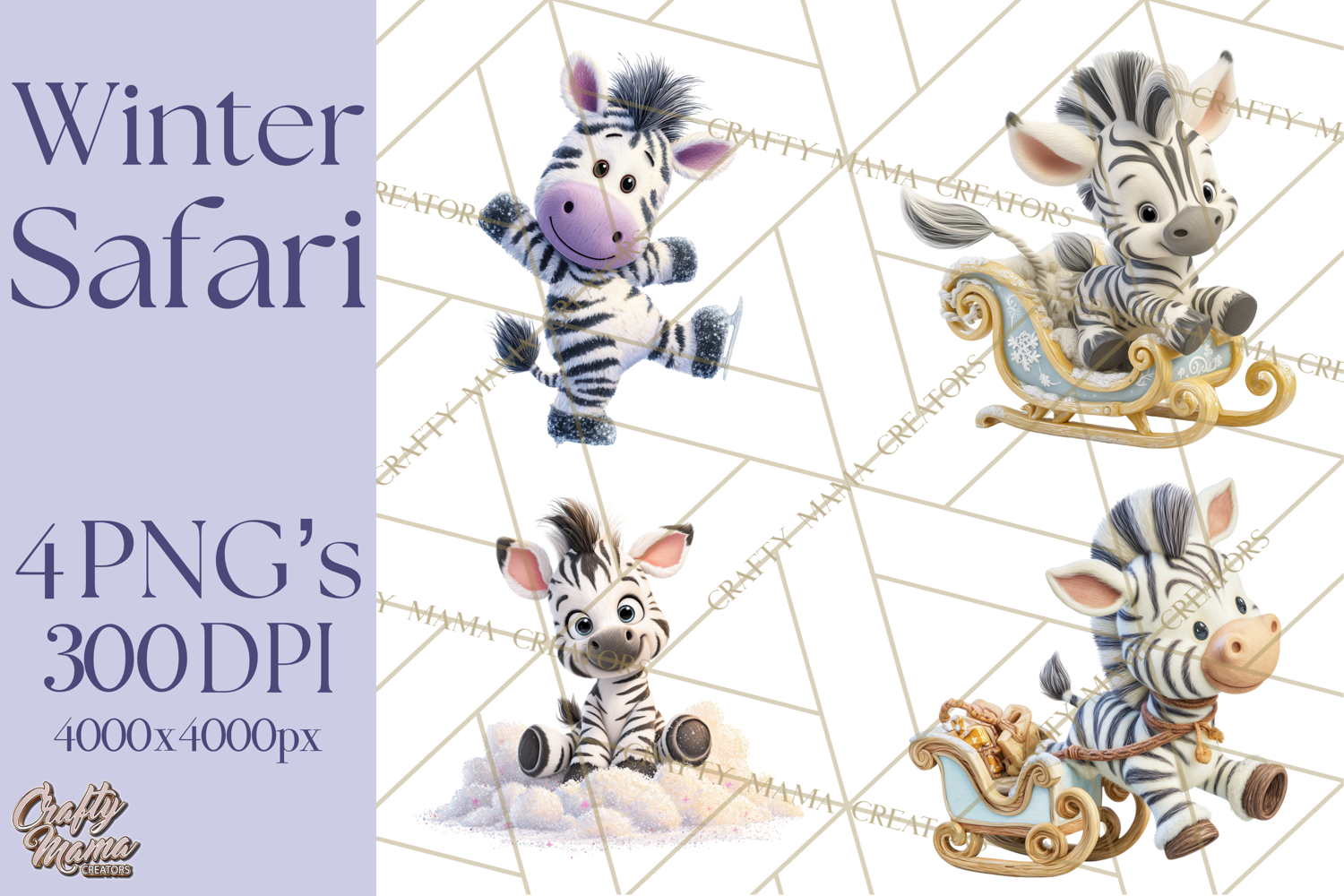 4 adorable files featuring baby safari animals enjoying a snowy winter. This collection includes cheerful animals like lions, giraffes, elephants, flamingos, and more, engaging in fun winter activities with coordinating seasonal props. Perfect for holiday invitations, nursery decor, sublimation, digital crafting, and printable projects.