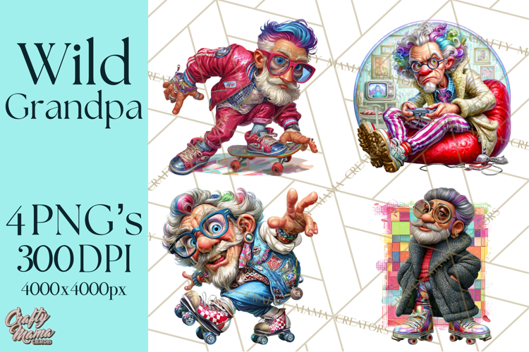 Meet your new favorite character set — a collection of 4 quirky, funny, wildly expressive grandpas in vibrant cartoon style! Perfect for planners, stickers, kids’ designs, teacher resources, social posts, sublimation projects, printable crafts, and any creative work that needs charm, personality, and humor.