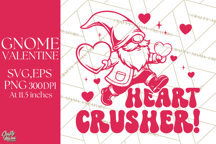 Heart Crusher | Valentine Gnome | Kids Valentine Svg