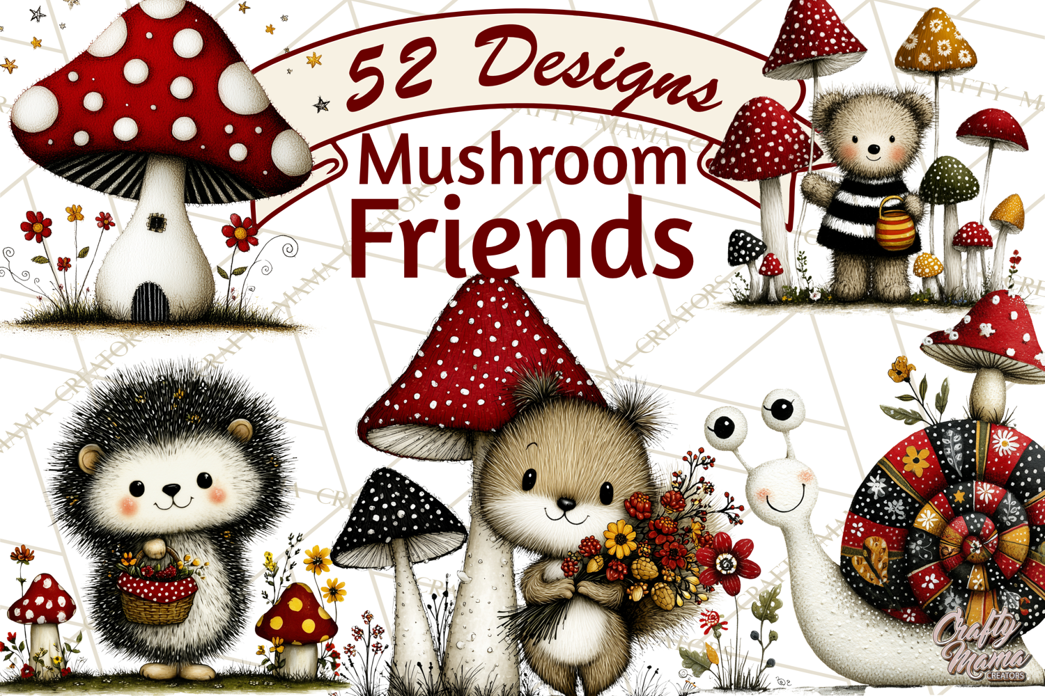 This set includes 52 PNG images, all created in a soft storybook style that blends beautifully with cozy woodland themes and nature-inspired designs.