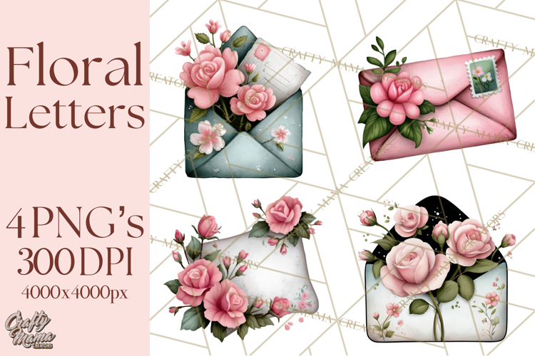 Similar Design Products to Rose Envelope Clipart, Romantic Floral Letter PNG Art