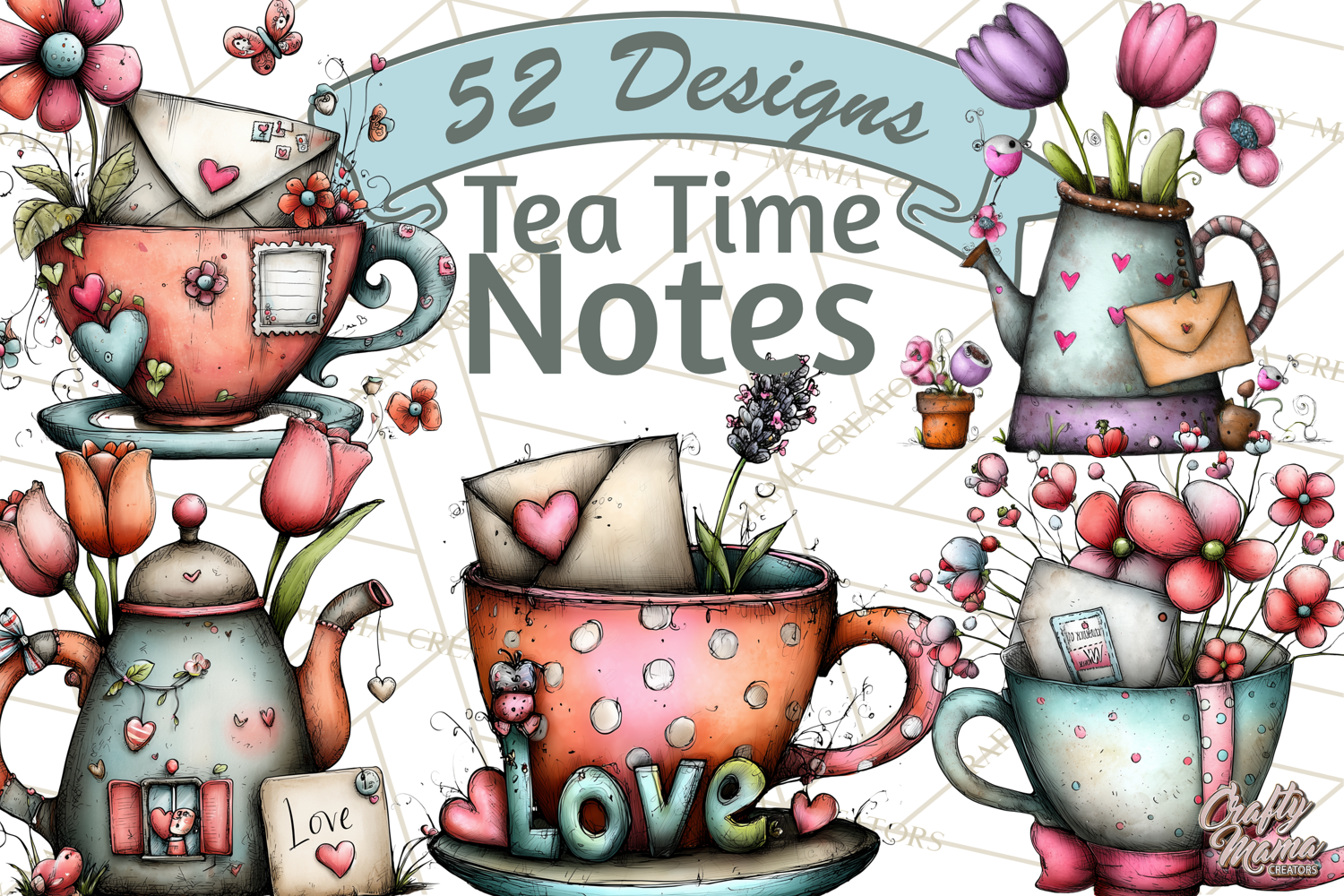 Similar Design Products to Tea Time Notes Clipart, Printable Teacup PNG, Romantic
