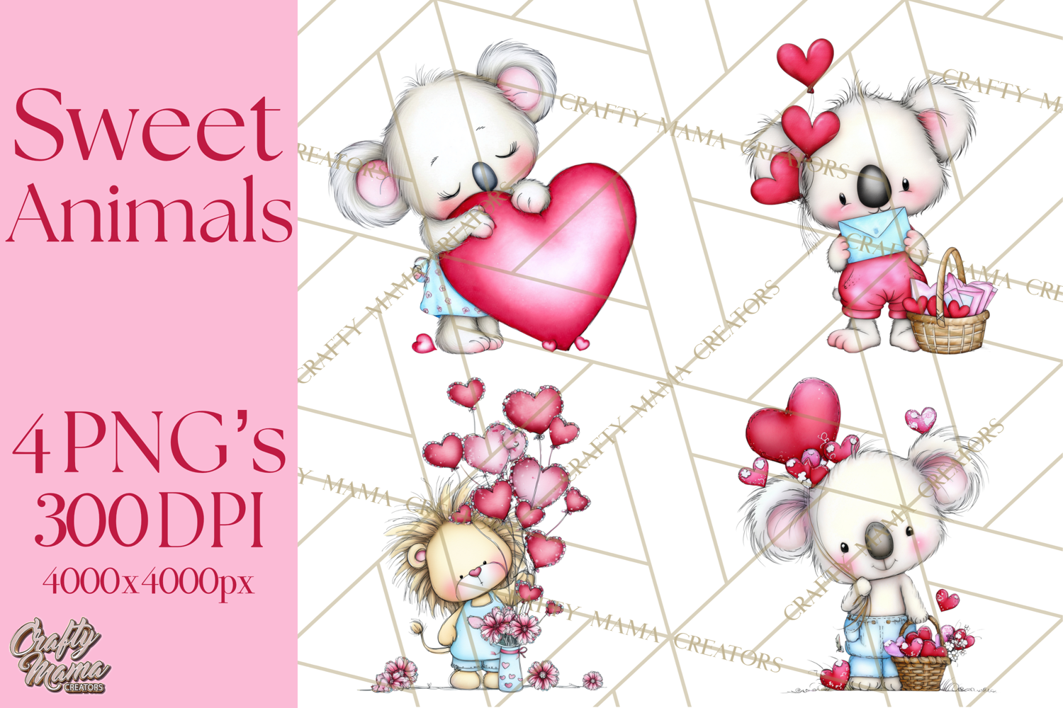 Bring your Valentine projects to life with this adorable collection of 4 humorous Valentine animal illustrations! Each character is created in a sweet, soft, rounded style perfect for children’s crafts, classroom materials, scrapbooking, cards, stickers, party décor, and printable gifts.