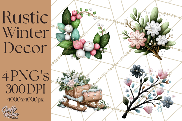 Rustic Winter Decor Clipart, Printable Cozy PNG, Folk Art