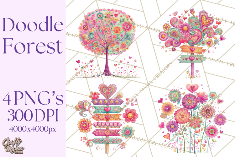 Whimsical Forest Doodle Trees And Animals PNG Clipart example image 1