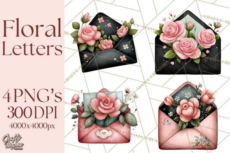 Similar Design Products to Rose Envelope Clipart, Romantic Floral Letter PNG Art