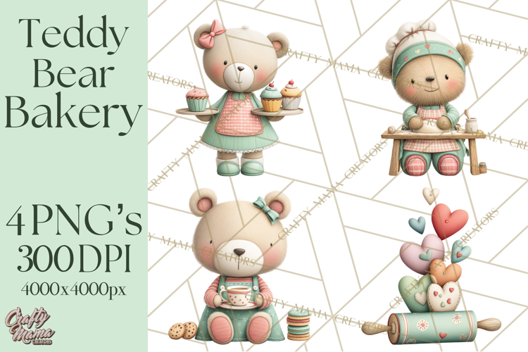 Bring sweetness to your Valentine projects with this Teddy Bear Bakery clipart collection! Perfect for cards, stickers, planners, and more.