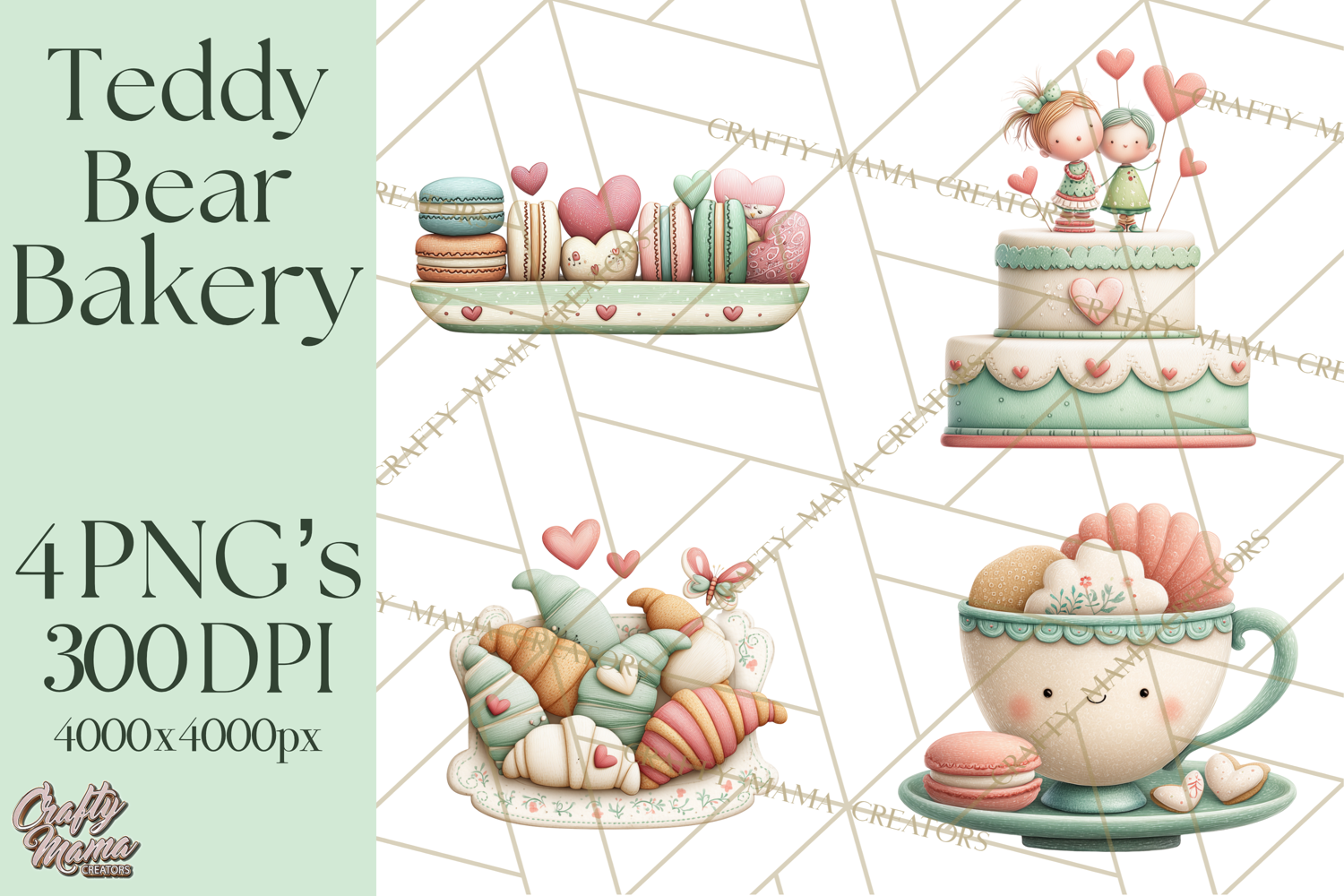 Bring sweetness to your Valentine projects with this Teddy Bear Bakery clipart collection! Perfect for cards, stickers, planners, and more.