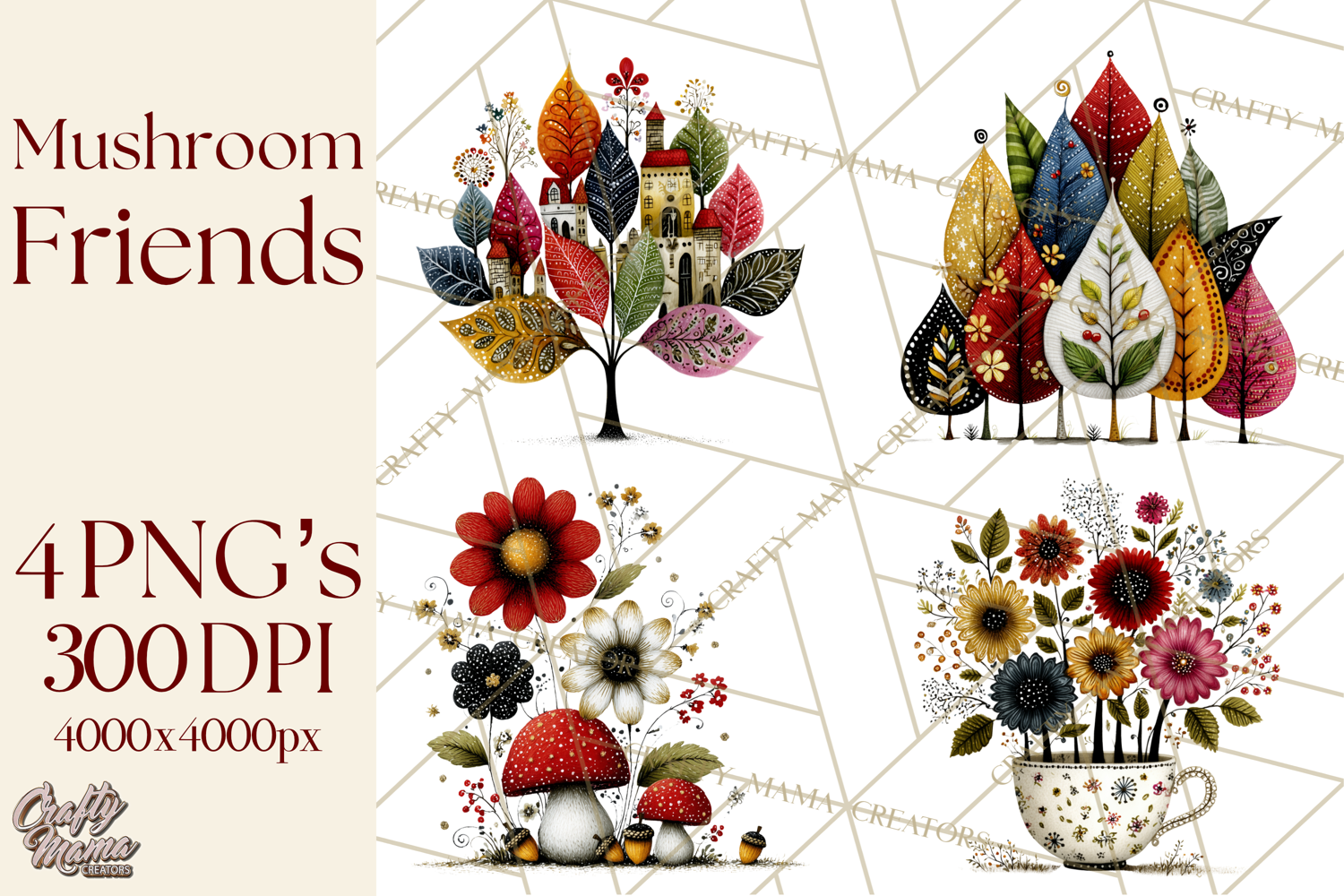 Similar Design Products to Forest Friends Woodland Animals PNG Clipart Mushrooms Art