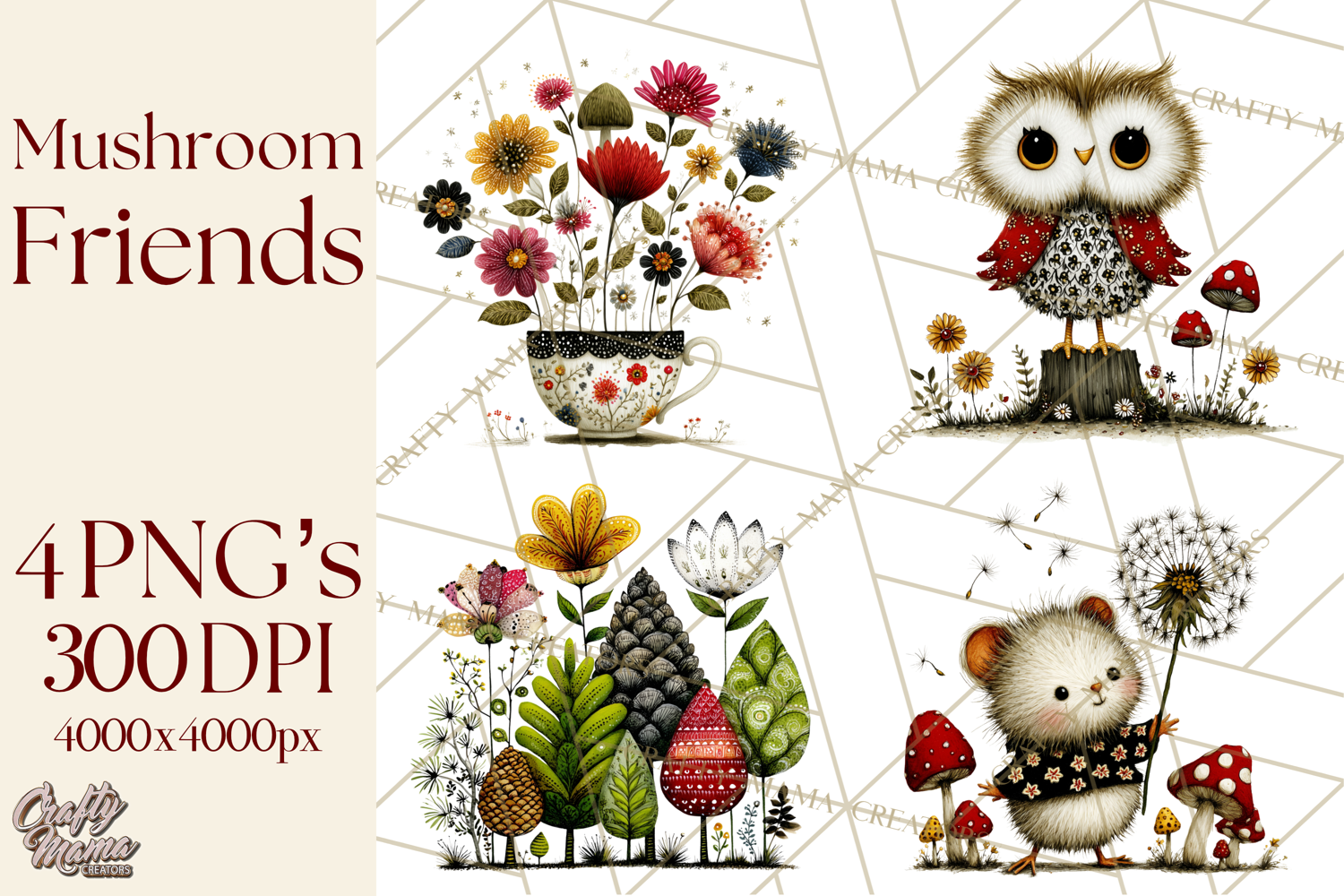 Similar Design Products to Forest Friends Woodland Animals PNG Clipart Mushrooms Art