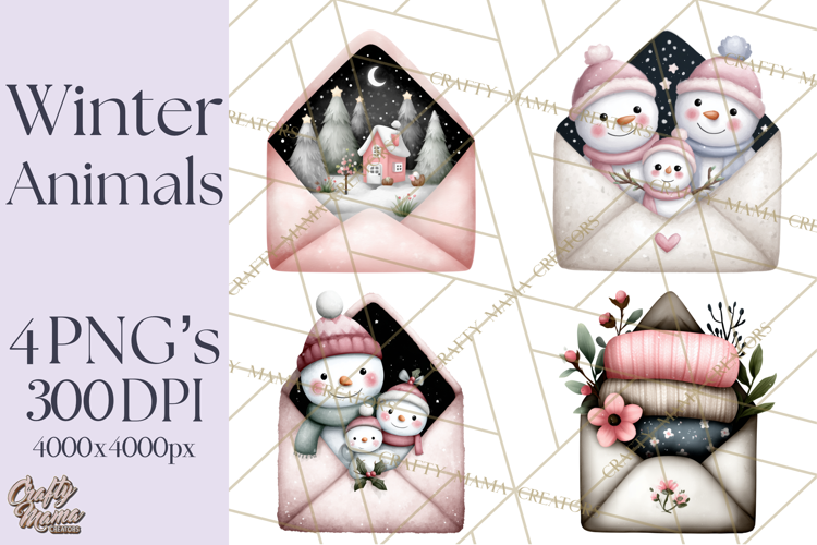 Similar Design Products to Winter Animals in Envelopes Clipart PNG, Mini Winter World
