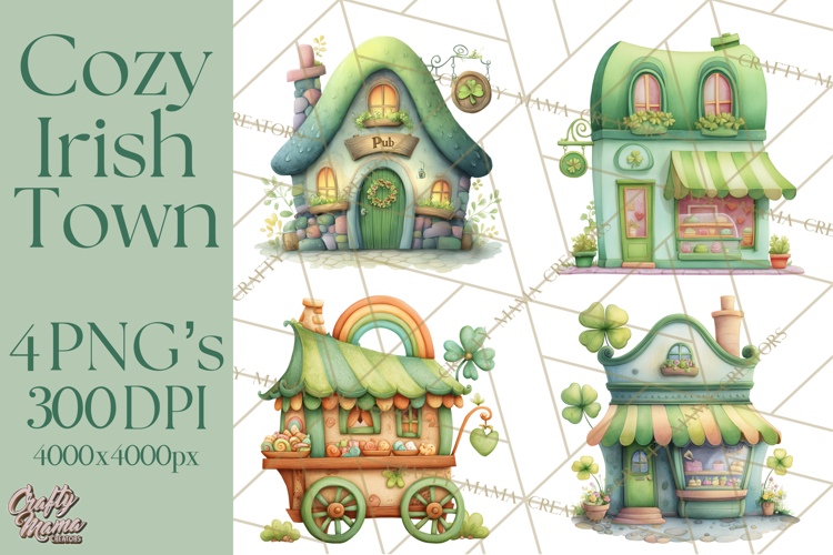 St Patrick’s Day Storybook Town Clipart Irish Village PNG example image 1