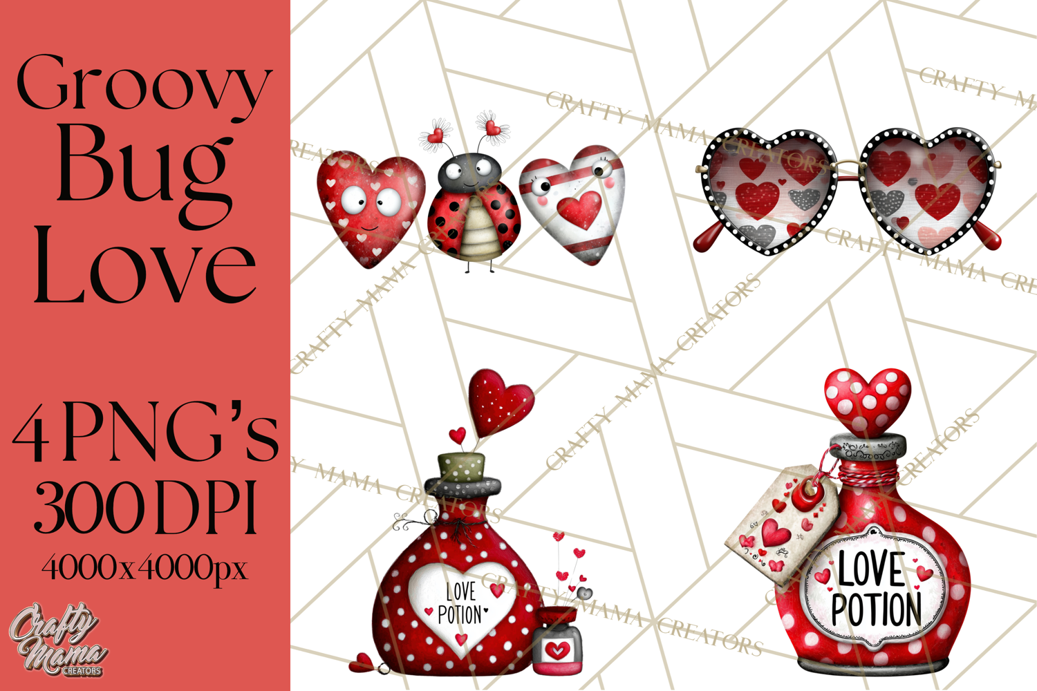 Similar Design Products to Groovy Retro Valentine Bug Clipart PNG, 70s Love Clip Art