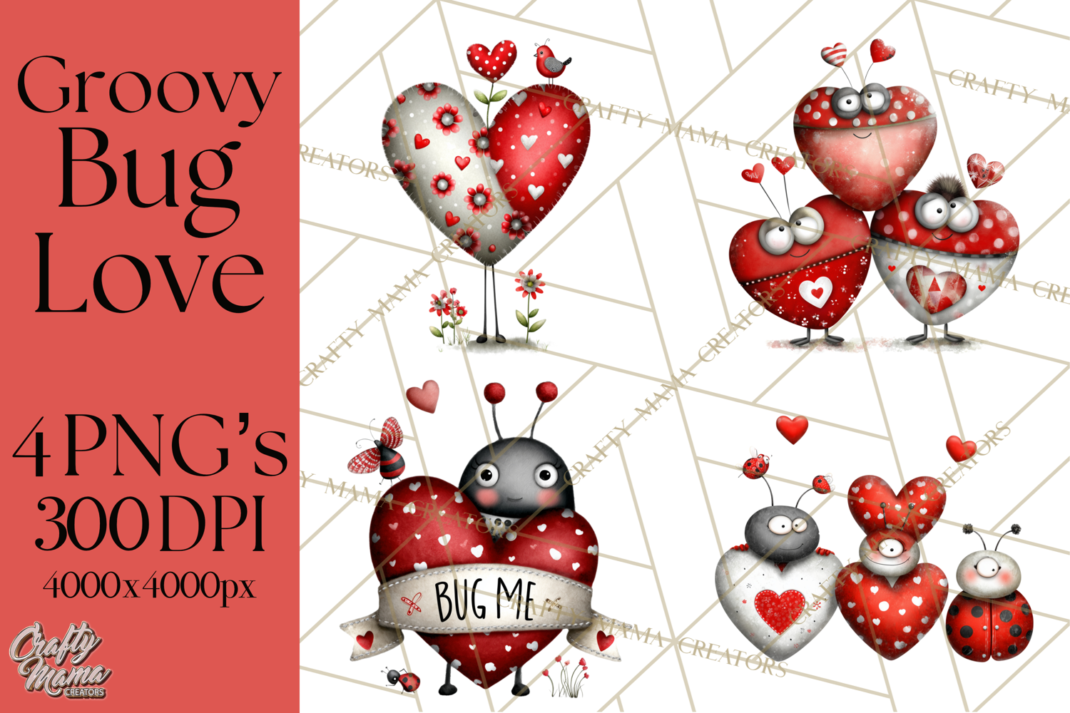 Groovy Retro Valentine Bug Clipart PNG, 70s Love Clip Art example image 1