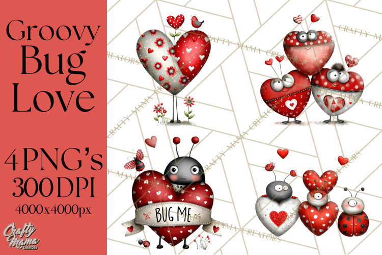 Similar Design Products to Groovy Retro Valentine Bug Clipart PNG, 70s Love Clip Art