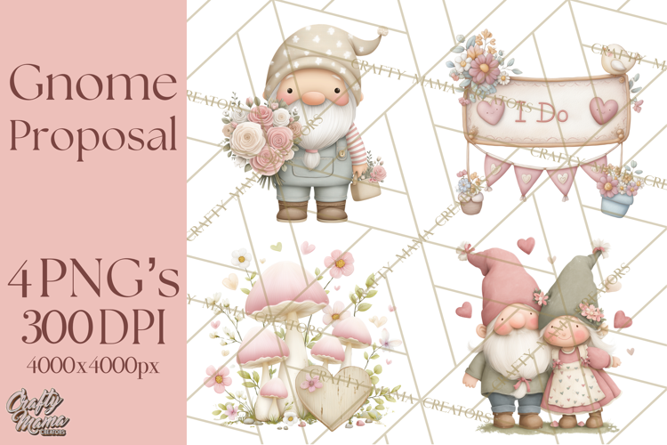 Gnome Valentine Proposal Clipart PNG Engagement Mini World example image 1