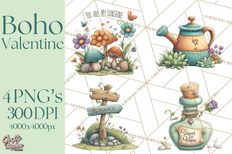 Similar Design Products to Boho Valentine Cactus Clipart PNG, Desert Romance Clip Art