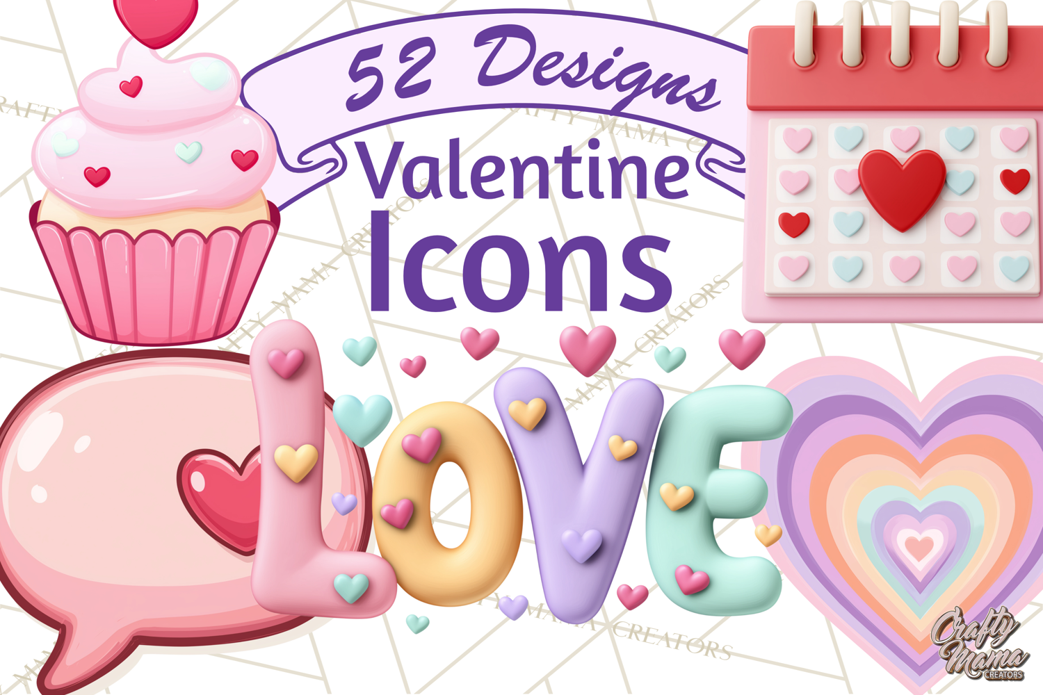 Cute Valentine Icons PNG Pastel Love Clipart Illustrations example image 1