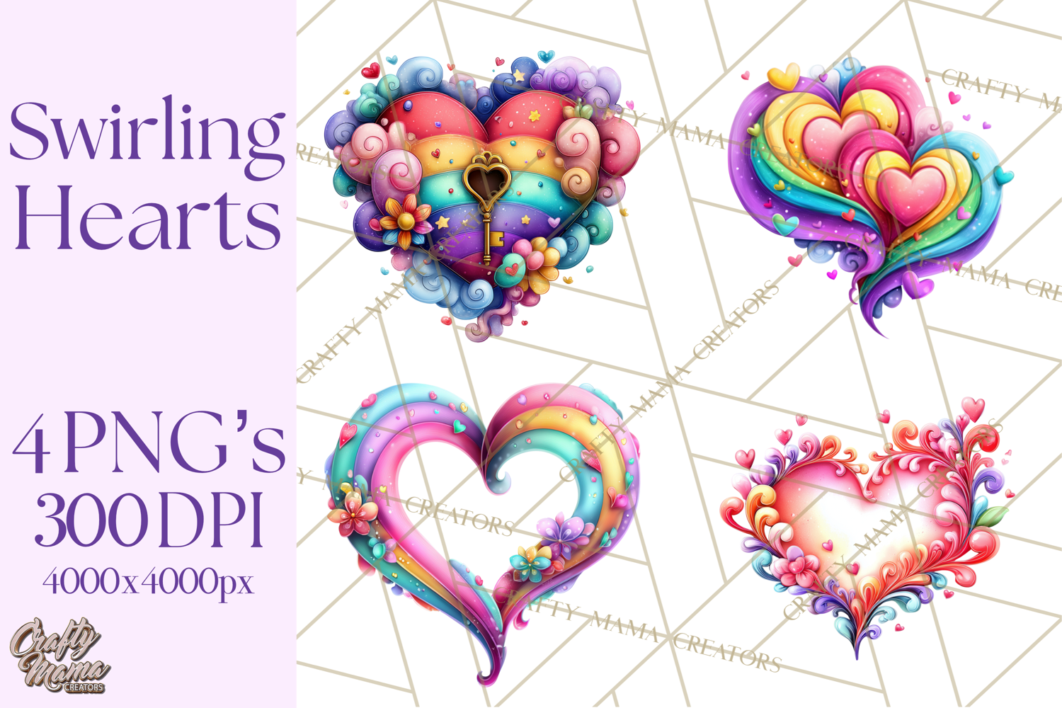 Bring charming Valentine style to your projects with these swirling pastel heart icons! Each design features clean line art in soft romantic Valentine colors—perfect for stickers, cards, invitations, scrapbooking, sublimation, and more