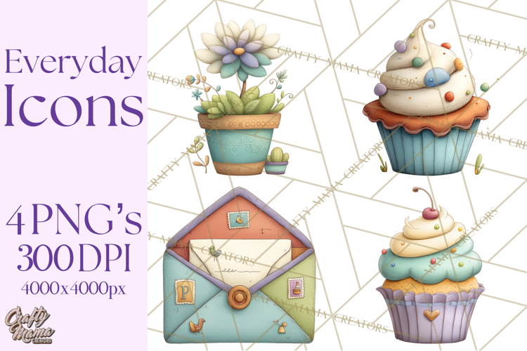 Add soft pastel charm to your creative projects with this versatile Everyday Icons clipart set—perfect for planners, stickers, invitations, and scrapbooking.