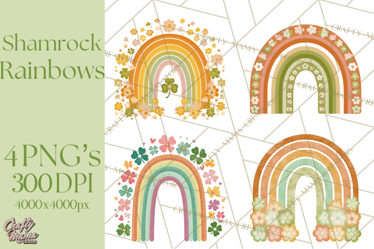 Similar Design Products to Retro St Patricks PNG Clipart, Vintage Shamrock Rainbow