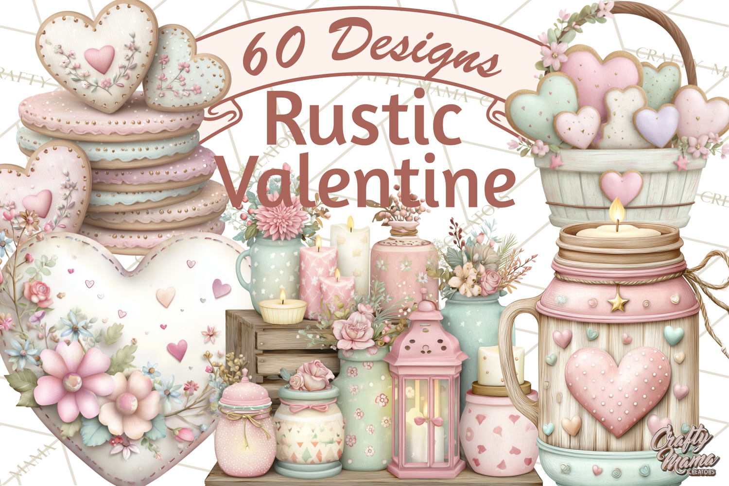 Bring cozy farmhouse charm to your projects with this Rustic Valentine Decor clipart collection! Featuring burlap hearts, mason jars, stitched ornaments, wooden signs, and rustic accents, these graphics are perfect for planners, invitations, scrapbooking, stickers, and DIY crafts.