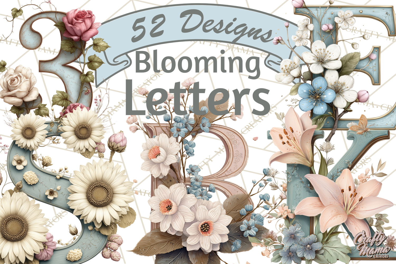 Blooming Letters Clipart, Floral Alphabet Clip Art PNG example image 1