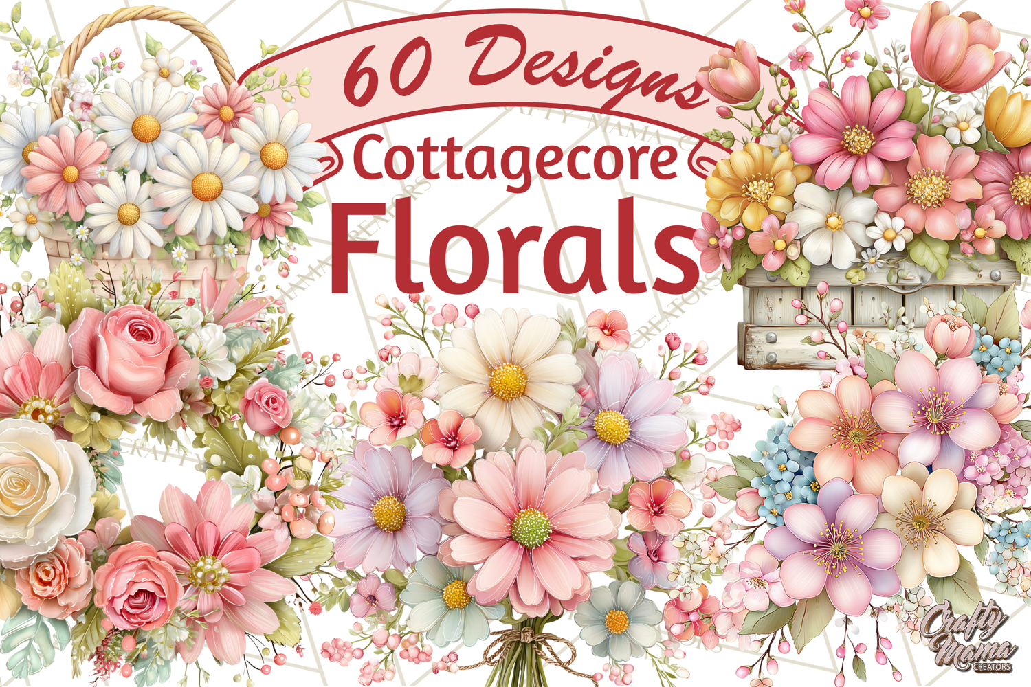 Create soft, romantic designs with this spring cottagecore floral clipart collection, featuring elegant wildflowers, rustic arrangements, and timeless botanical elements.