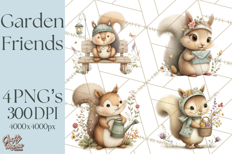 Bring spring to life with a cheerful Garden Friends clipart set featuring bunnies, birds, hedgehogs, squirrels, mice, and ducklings paired with matching florals and garden accessories. Each design is created in a realistic pastel, flat‑vector style for clean, print‑friendly results.