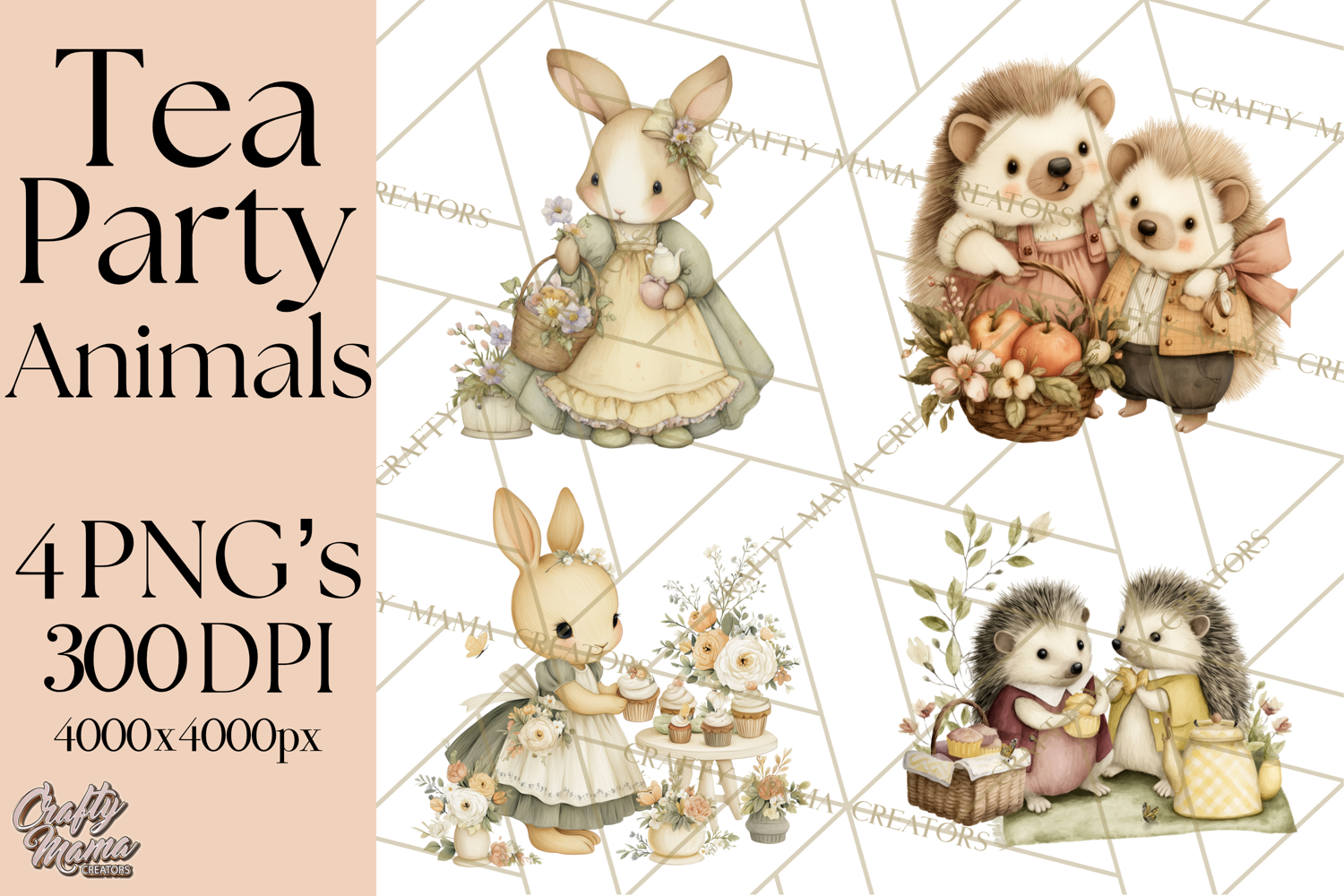 Similar Design Products to Vintage Spring Animals Clipart, Tea Party Picnic Png