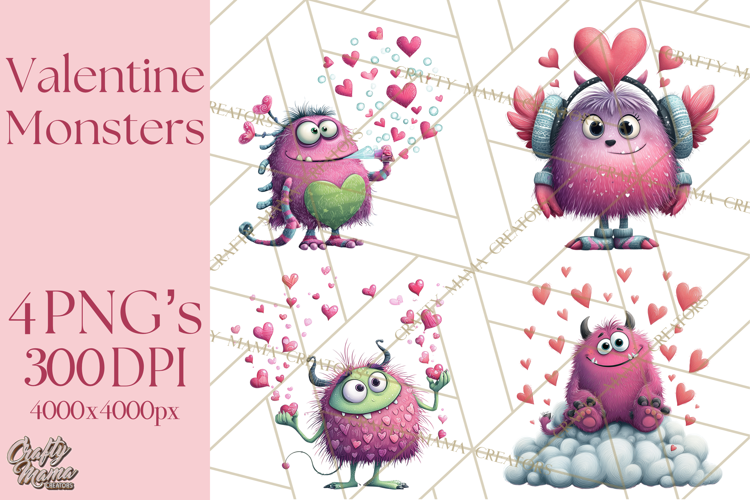 Similar Design Products to Valentine Monster Clipart PNG, Cute Valentine Monsters, Kids