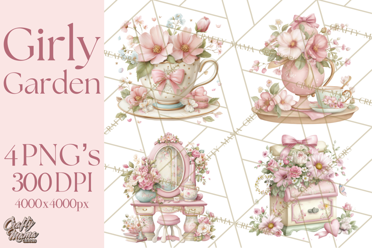 Similar Design Products to Pink Coquette Clipart, Girly Graden Decor Png, Feminine