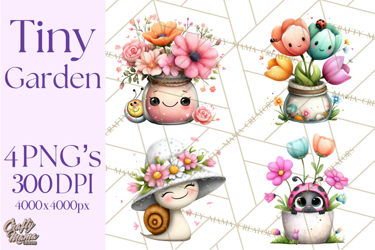 Create whimsical spring designs with this adorable mini world clipart collection, featuring tiny garden scenes filled with cheerful flowers, small critters, and charming spring details. Each design feels like a little story, making this collection perfect for planners, stickers, and playful creative projects.