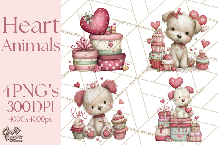 Similar Design Products to Valentine Clipart PNG, Cute Critters Hearts, Puppies Kittens