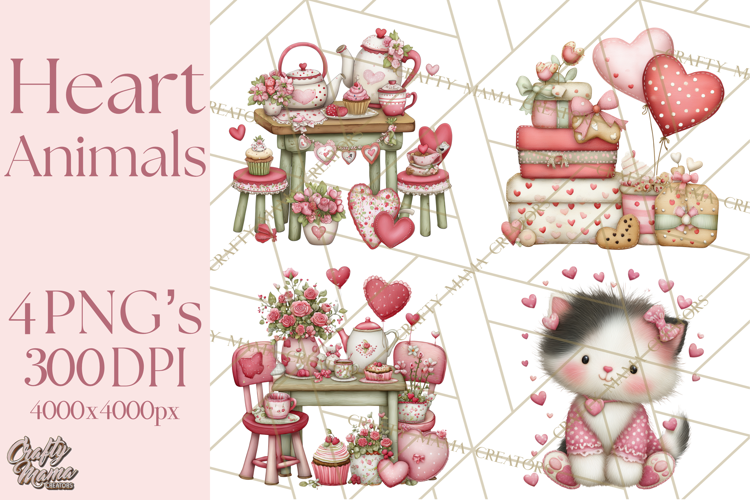 Similar Design Products to Valentine Clipart PNG, Cute Critters Hearts, Puppies Kittens