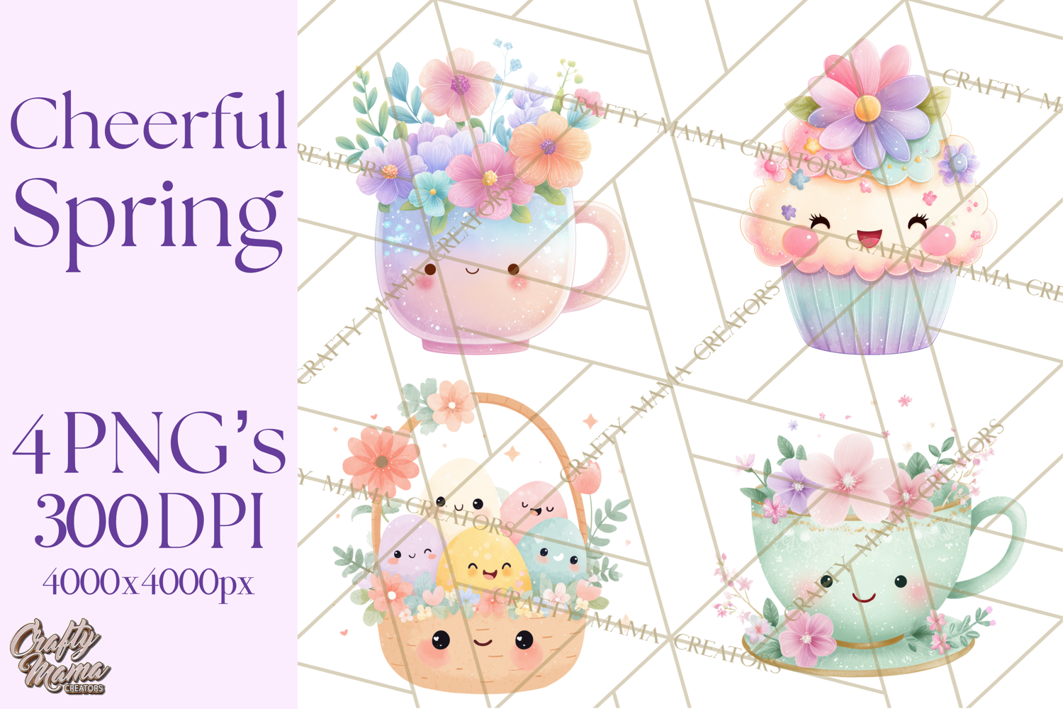 Each image is crafted with clean, crisp lines and a bright spring pastel palette, making your creative projects pop.