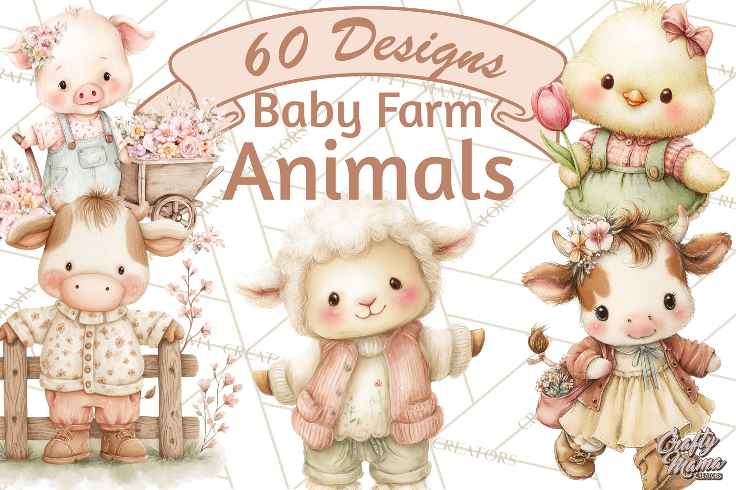 Bring soft spring charm to your projects with this adorable Baby Farm Animals Mini World Clipart Collection. Featuring a cohesive pastel aesthetic with gentle, kawaii-style animals and coordinating farm props, this set is perfect for children’s designs, nursery decor, and seasonal crafts.