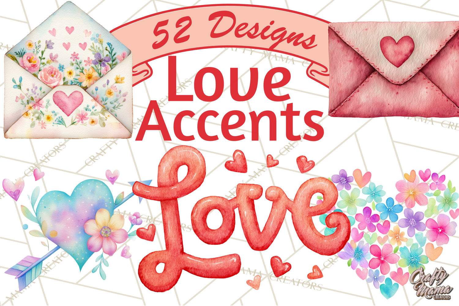 Similar Design Products to Watercolor Love Accents Clipart, Hearts, Envelopes Png