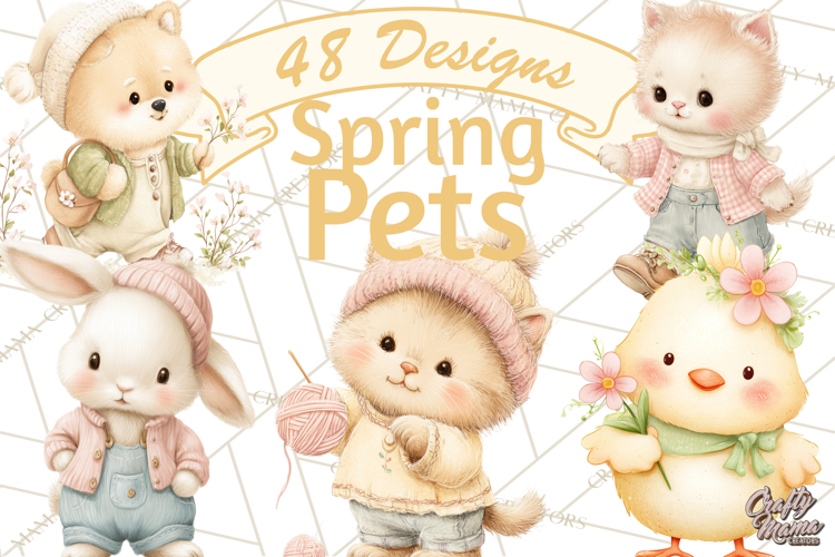 Similar Design Products to Spring Pets Clipart PNG, Cute Baby Animals Watercolor