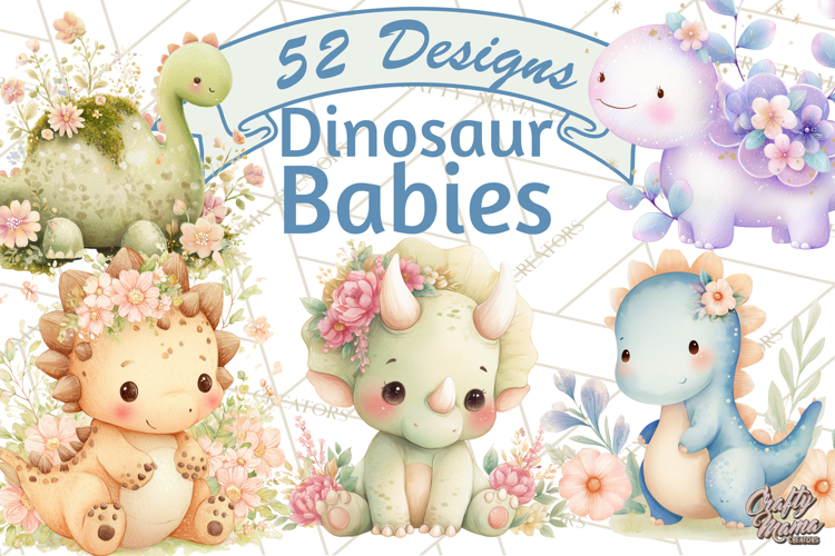 Similar Design Products to Cute Baby Dinosaurs Clipart PNG, Watercolor Dinosaur