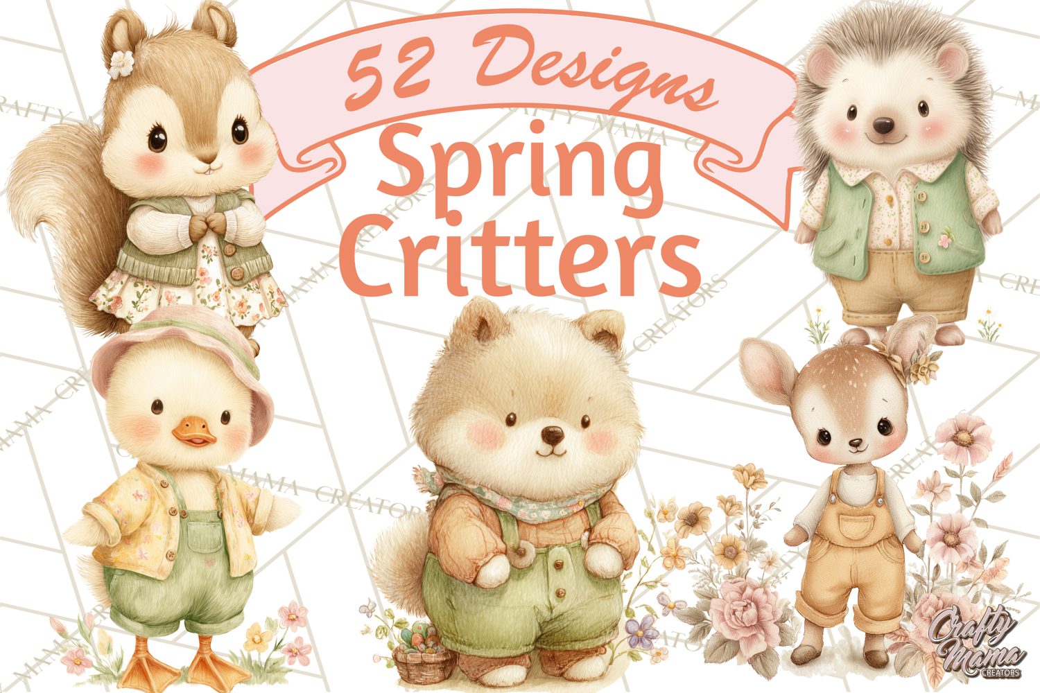 Similar Design Products to Spring Animals Clipart PNG, Cute Baby Animals, Pastel Spring