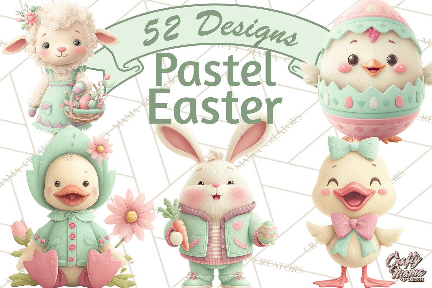 Celebrate Easter in soft pastel tones with this Whimsical Easter Characters clipart collection. Featuring full-body bunnies and spring animals in a fresh mint, pink, and coral palette, these adorable characters are perfect for printables, stickers, cards, and seasonal projects.
