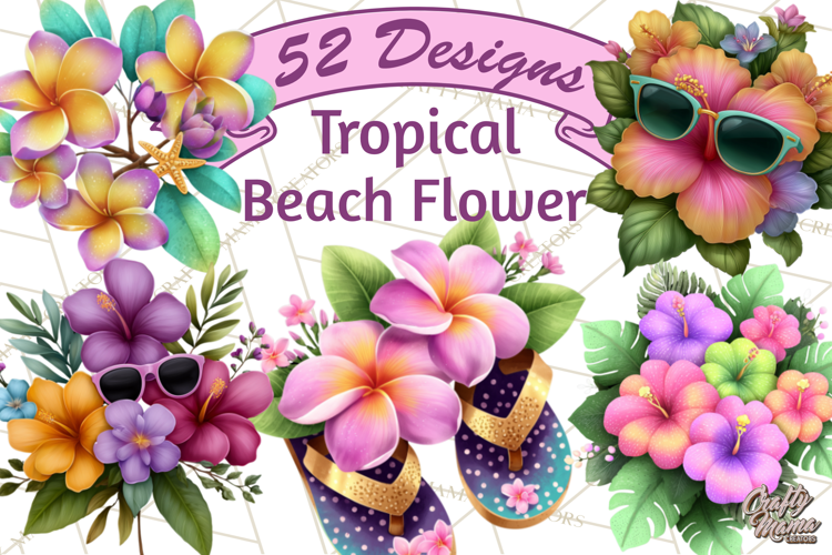 Create vibrant summer designs with this Tropical Beach Flower Clipart