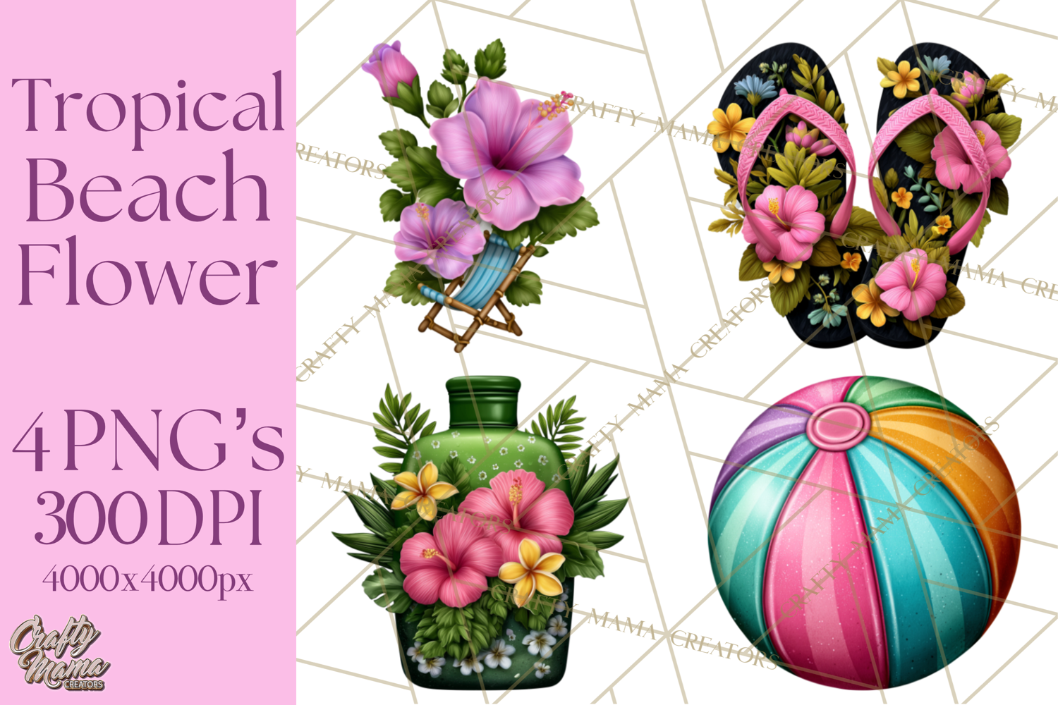 Create vibrant summer designs with this Tropical Beach Flower Clipart