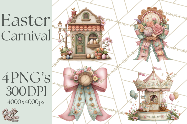 Bring festive Easter fun to your creative projects with this Easter Carnival clipart collection! This bundle includes 4 high-quality PNG images featuring pastel carnival booths, Ferris wheels, spring rides, egg toss games, bunny-themed prizes, cotton candy stands, dessert carts, and charming carnival décor.