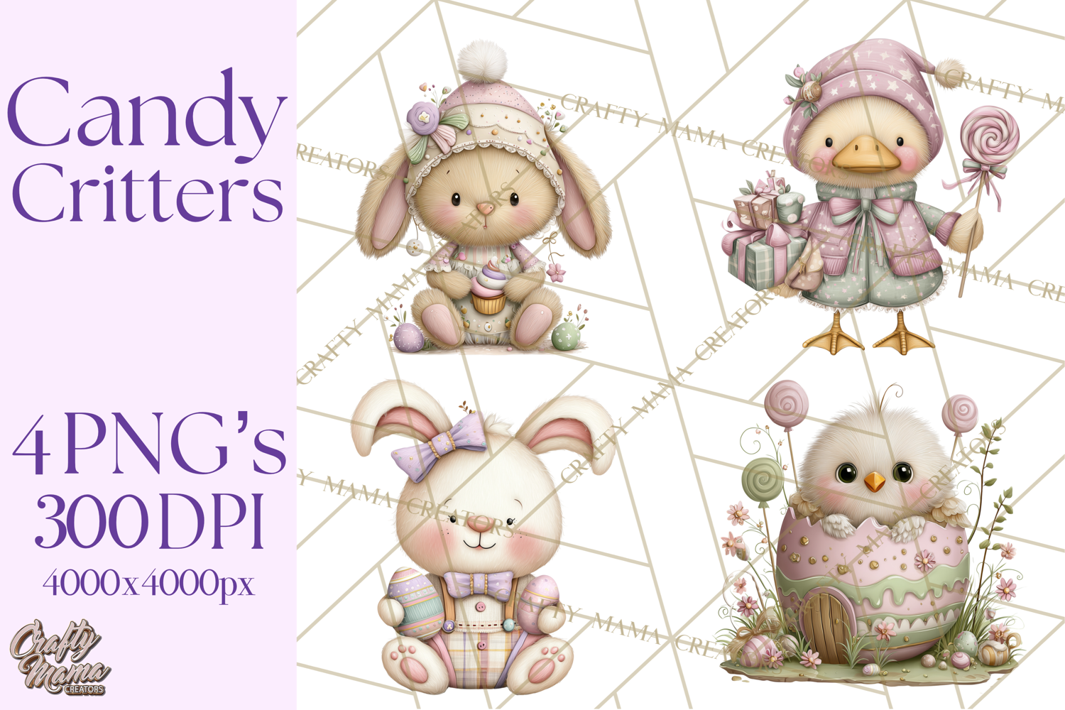 Easter Candy Animals Clipart Png Cute Pastel Candy Critters Illustration Sweet Easter Animal Characters Png Candy Themed Easter Clip Art Pastel Easter Animals Printable Png Whimsical Easter Candy Illustrations Cute Spring Candy Animals Clipart Easter Treats Animal Artwork Png Kids Easter Candy Illustration Png Playful Pastel Easter Characters